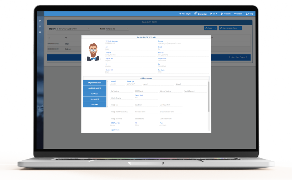Mergentech Başvuru Modülü, personel ve öğrenciler için personel ilanı oluşturma ve başvuruları gerçekleştirme amacıyla tasarlanmış web tabanlı bilgi yönetim sistemidir.